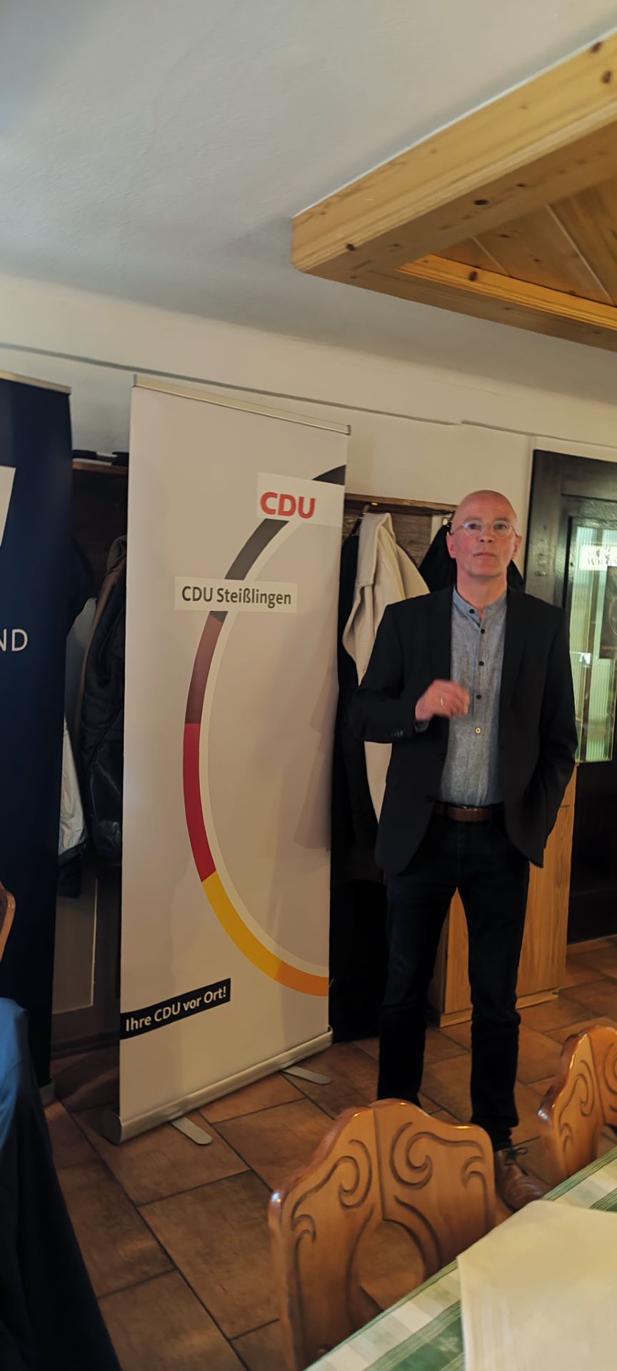Über 50 Teilnehmer konnte der CDU Gemeindeverband Steißlingen zum Besuch von Andreas Jung am 18. April 2024 im Gasthaus Ochsen in Steißlingen begrüßen. Unter dem Motto „Alles auf den Tisch: Was bewegt Steißlingen? Gemeinde. Bund. Europa.“, sollten neben Informationen besonders die Fragen der Anwesenden nicht zu kurz kommen.